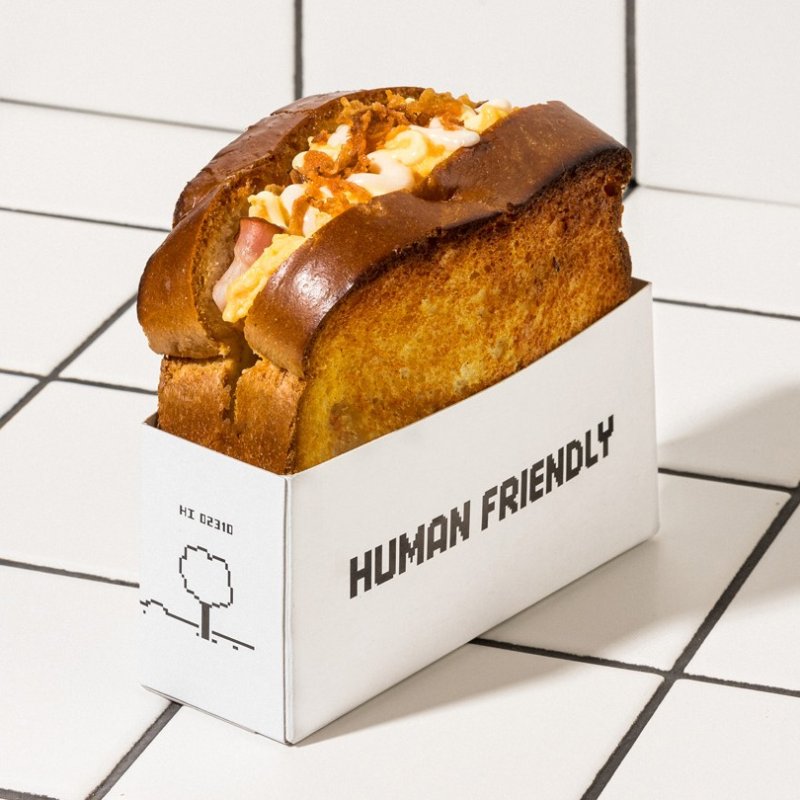 Korean Brioche με αυγά scrambled, ζαμπόν, Cheddar, Bacon, BBQ Sause, Parco Mayo