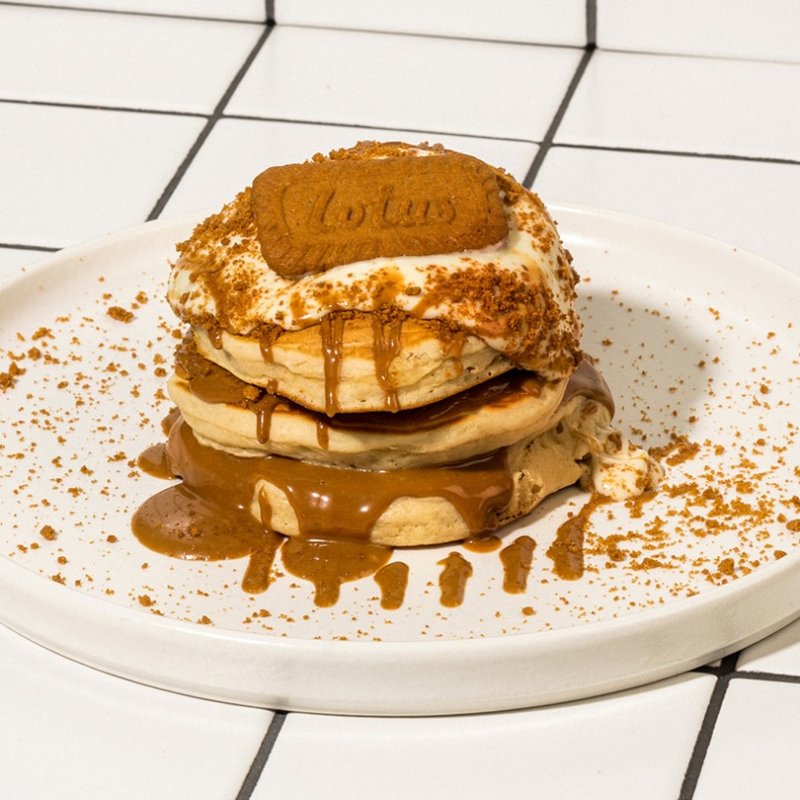 Pancake με Lotus Biscoff και πραλίνα Λευκής Σοκολάτας