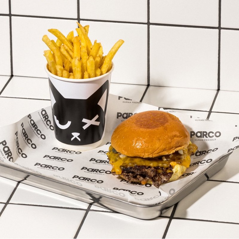 Smash Burger με διπλό Black Angus μπιφτέκι, διπλό τυρί cheddar, κρεμμύδι, πίκλες, ketchup και Parco burger sauce.