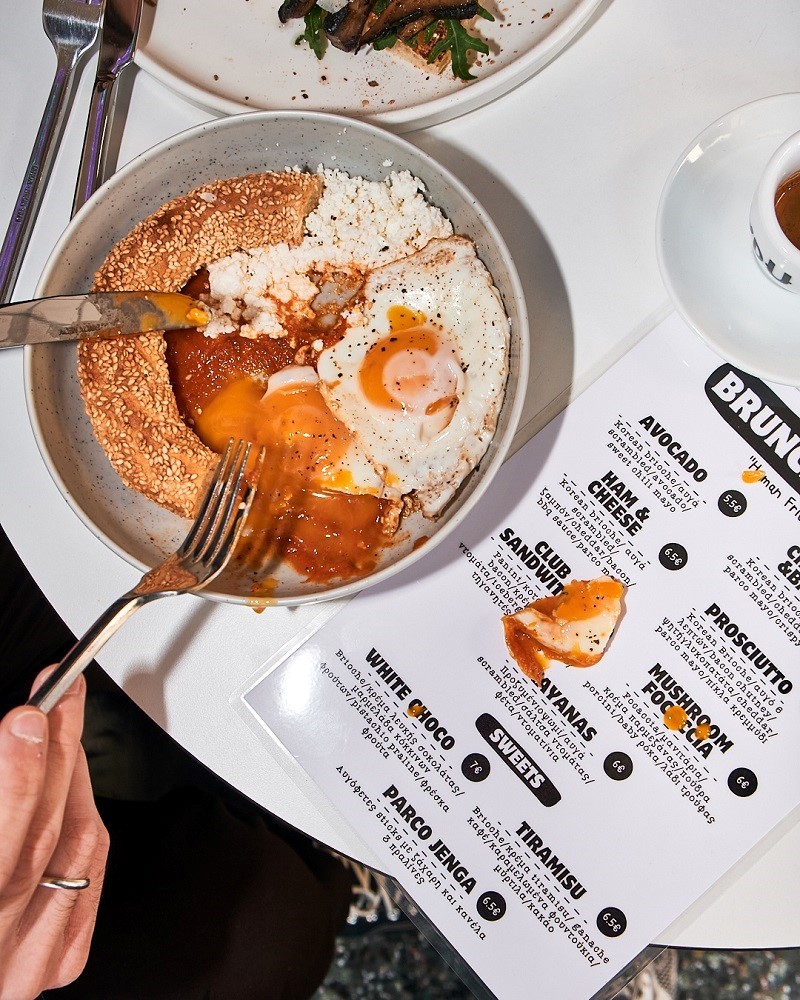 Κουλούρι θεσσαλονίκης με Αυγά Μάτια Ελευθέρας Βοσκής, Σάλτσα Ντομάτας, Φέτα Καλαθάκι Λήμνου.